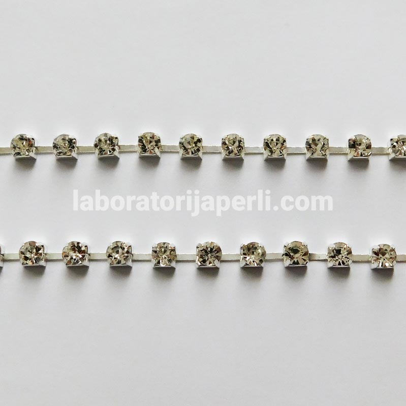 Štras lanci se sastoje od niza metlnih otvorenih kutija sa cirkonima, povezanih ravnim šipkicama koje mu omogućavaju kretanje.