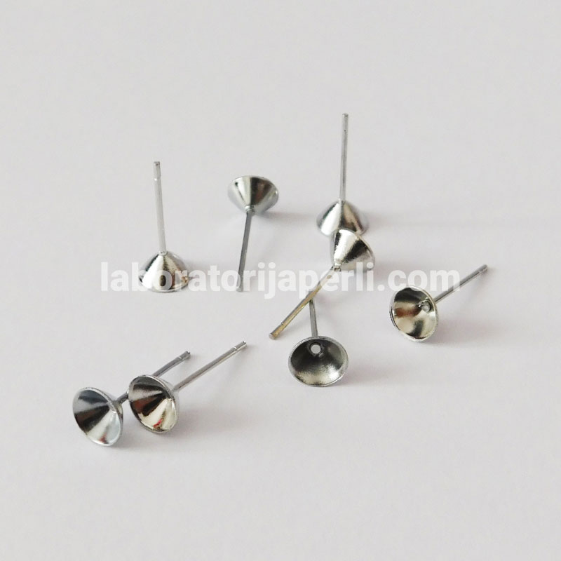 Osnova za minđuše boje nikla sastoji se od udubljene površine prečnika 6 mm i dubine 3 mm na koju možete zalepiti kristal, okruglu perlu i sl.